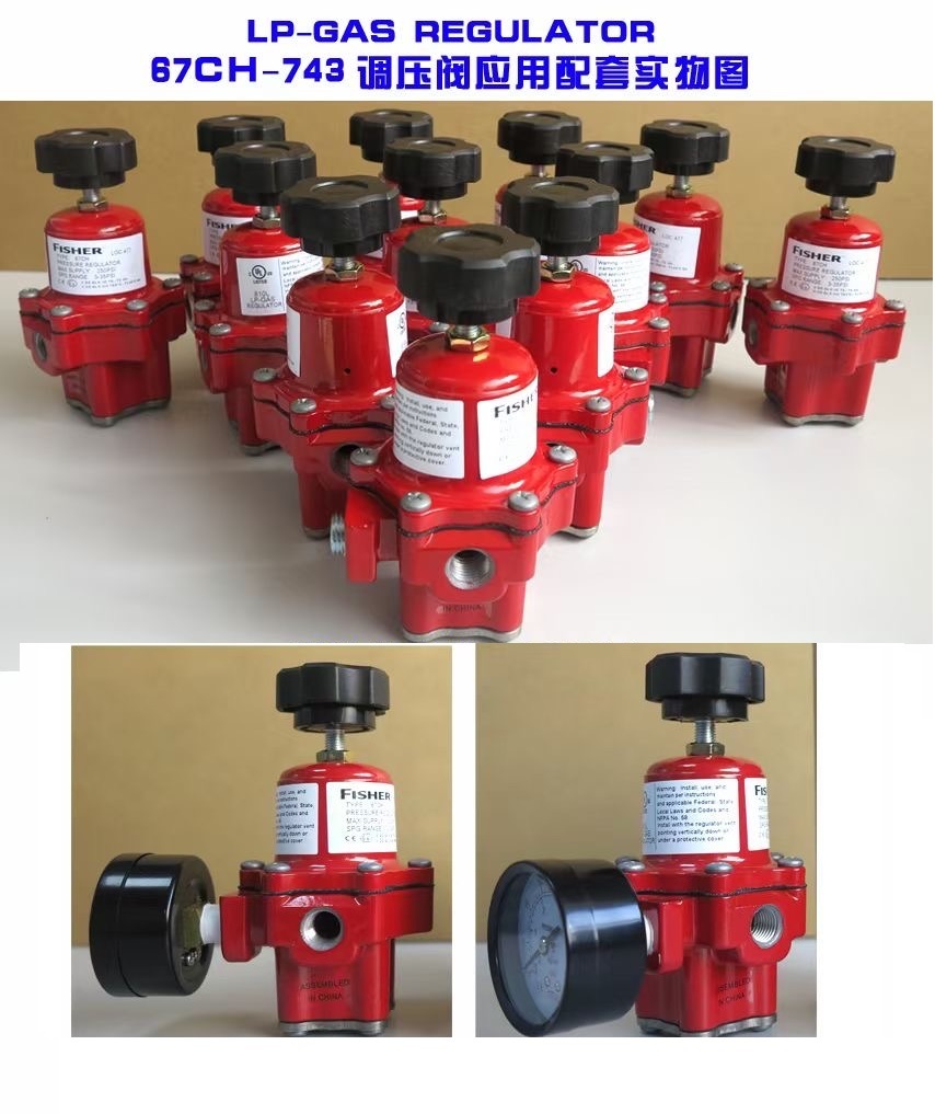 FISHER67CH-743适用于气化能力10-30kg/h的壁挂式电热式气化炉上,或者不管液相、气相液化石油气钢瓶每小时用气量在1-30kg都可作为一级减压阀使用!