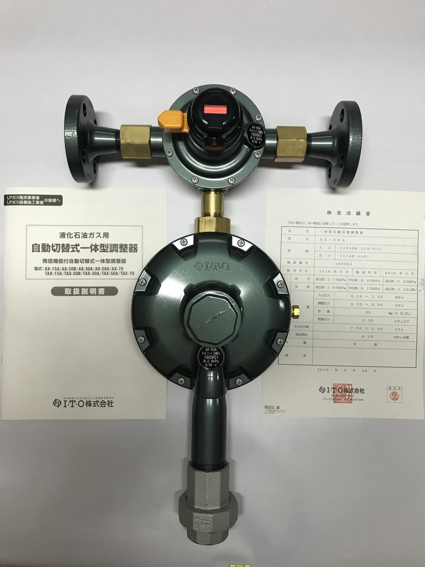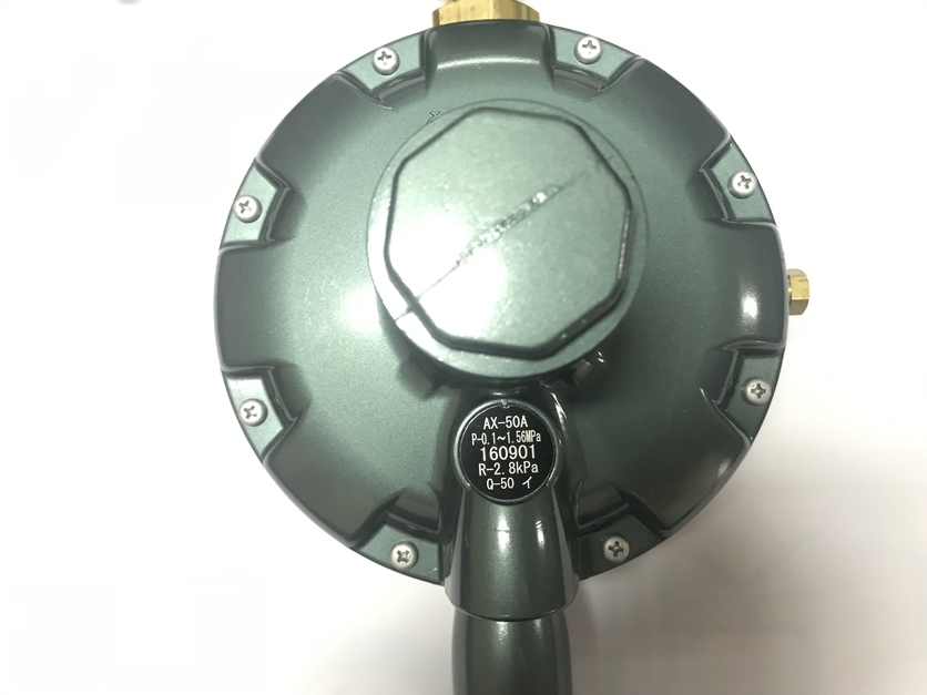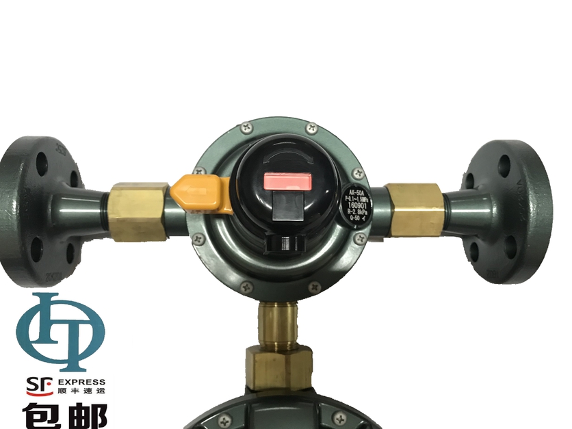 液化石油气用自动切换式一体型调压器左右两方各有一个入口,一方(正在使用方)的液化气容器的供气压力不能维持正常供应时,由另一方(预备方)的容器自动补给液化气,从而保持正常供应的一种调压器。